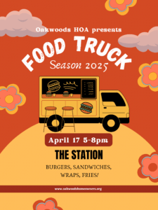 Oakwoods is proud to host The Station once again this year with their delicious burgers, sandwiches, wraps and fries. Swing by to purchase some tasty dinner then head to the park to socialize with your neighbors!